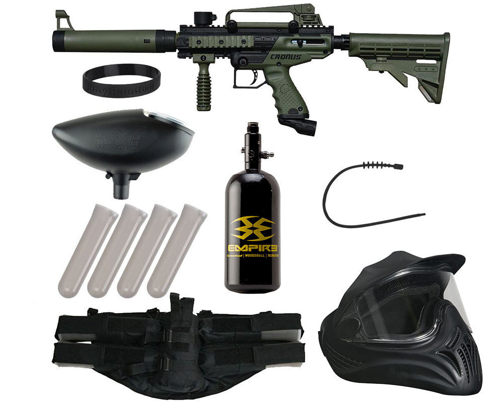 The all-new Tippmann Cronus Tactical Edition combines performance and durability in an attention-grabbing milsim body. The marker’s high-impact, composite construction is extremely lightweight and features molded-rubber grips and an internal gas line for enhanced comfort, control, and maneuverability. The Cronus also offers four Picatinny rails for fast and easy modification and utilizes Tippmann’s proven in-line bolt system. The tactical edition adds a mock silencer with sight, a carry handle, and an adjustable stock.