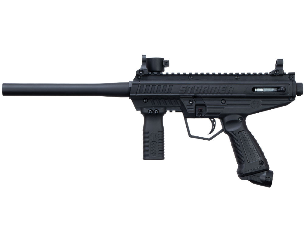 The new Tippmann Stormer is a completely modular .68 caliber marker for all levels of play. The Stormer Series is available in 3 models allowing full customization. The Stormer Basic features our reliable in-line bolt system with a high-impact composite body. The Stormer Tactical adds Tactical Front Shroud, Front / Rear Flip Up Sights and a 6 Position Collapsible Stock that completes the military look. The Stormer Elite allows you to switch between loader and mag fed configurations offering several different looks to switch between. High-impact composite body Internal gas line Multiple Picatinny rails Vertical Grip Front and rear fixed sights Proven, in-line bolt design High-performance barrel Bottom mounted asa Single Trigger Offset Feedport