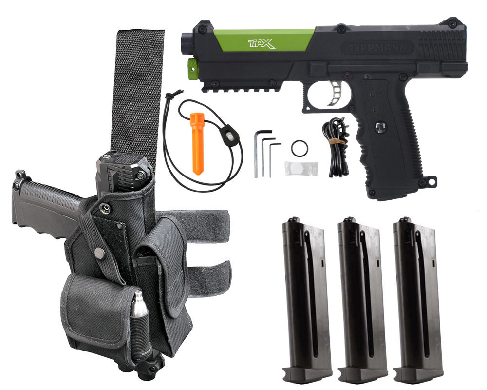 Paintball Pistols The Deluxe Pistol Kit includes a TiPX Pistol, Reversible Holster, Maintenance Kit and 3 Tru-Feed Magazines.