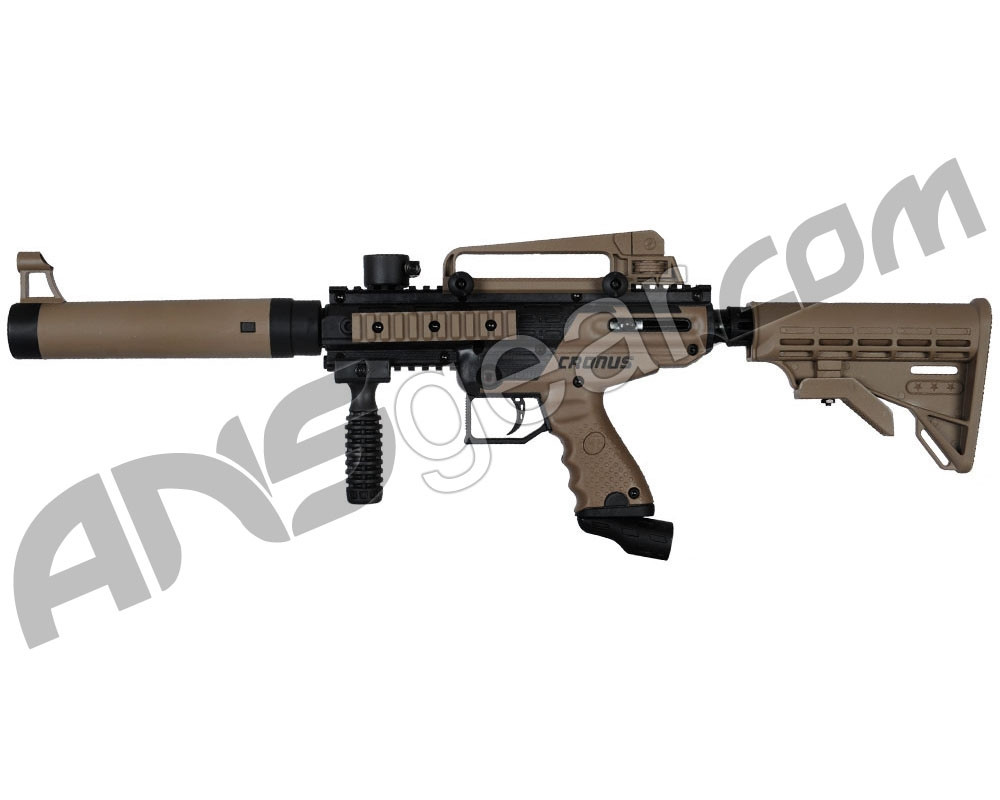 The all-new Tippmann Cronus Tactical Edition combines performance and durability in an attention-grabbing milsim body and starts at the amazingly low retail price of $109. The marker’s high-impact, composite construction is extremely lightweight and features molded-rubber grips and an internal gas line for enhanced comfort, control, and maneuverability. The Cronus also offers four Picatinny rails for fast and easy modification and utilizes Tippmann’s proven in-line bolt system. The tactical edition adds a mock silencer with sight, a carry handle, and an adjustable stock.