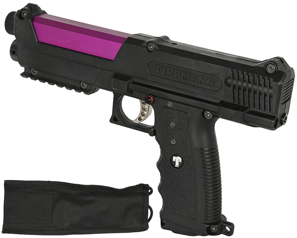 The Tippmann Pistol comes stock with Picatinny Rails. This will allow you to install some cool and useful accessories on the gun. You can Install a flashlight or laser on the front of the gun with ease. The Tippmann Paintball pistol comes stock with a Metal Trigger. The trigger on the Tippmann pistol is very durable and will puncture the 12 gram CO2 cartridge with the first trigger pull. Plastic is for kids... Thats why Tippmann gives you the BEST with their paintball pistol. The Tippmann TPX Pistol has a unique Magazine Feed System. The quick release system drops the magazine right into your hand with the touch of a button. This makes it very easy for quick reloading on your paintball pistol. Also, The magazine on the Tippmann Paintball Pistols does not hold your CO2 Cartridges. This makes spare Magazines inexpensive and light weight to carry. The Tippmann Pistol has covered Ammo Windows - Allows you to see how many balls are in your magazine at a glance. This is a great feature on the Tippmann paintball pistol because you will always know when to reload. You never want to be in a fight with your Tippmann Pistol and run out of ammo. The Tippmann Paintball Pistol Grip is ergonomically designed grip is smaller and textured for a secure feel. This gives you better grip on your Tippmann Pistol when you are in the heat of battle and running around with sweaty or paint covered hands.