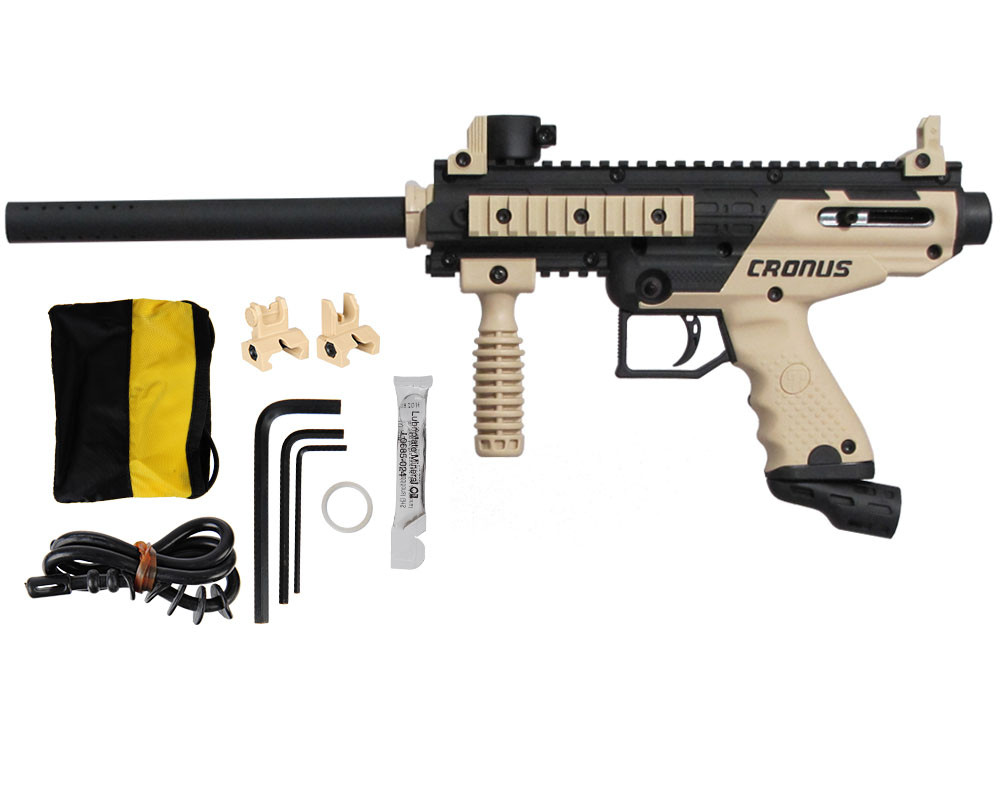 The all-new Tippmann Cronus basic option combines performance and durability in an attention-grabbing milsim body and starts at the amazingly low retail price of $129.95. The marker’s high-impact, composite construction is extremely lightweight and features molded-rubber grips and an internal gas line for enhanced comfort, control, and maneuverability. The Cronus also offers four Picatinny rails for fast and easy modification and utilizes Tippmann’s proven in-line bolt system. Easy to Accessorize Lightweight Design Proven High Performance In-line Bolt System Barrel Thread: Tippmann A5
