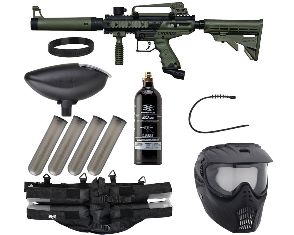 The all-new Tippmann Cronus basic option combines performance and durability in an attention-grabbing milsim body. The marker’s high-impact, composite construction is extremely lightweight and features molded-rubber grips and an internal gas line for enhanced comfort, control, and maneuverability. The Cronus also offers four Picatinny rails for fast and easy modification and utilizes Tippmann’s proven in-line bolt system.