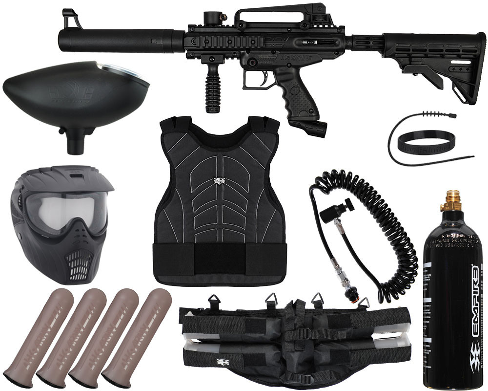 The all-new Tippmann Cronus Tactical Edition combines performance and durability in an attention-grabbing milsim body. The marker’s high-impact, composite construction is extremely lightweight and features molded-rubber grips and an internal gas line for enhanced comfort, control, and maneuverability. The Cronus also offers four Picatinny rails for fast and easy modification and utilizes Tippmann’s proven in-line bolt system. The tactical edition adds a mock silencer with sight, a carry handle, and an adjustable stock.