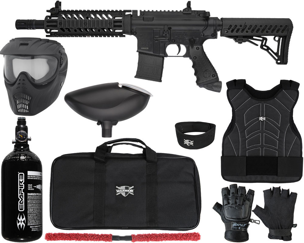 The TMC is designed to be an authentic AR-styled tactical carbine. One feature that makes the TMC stand out from the rest is that the user has the choice of using either a hopper or a magazine to load paint into their gun. A fully functional charging handle adds to the realism as well as a carbine stock and quad rail barrel shroud. A 12” barrel comes standard and can be upgraded to any Tippmann 98 threaded barrel. Gas lines are internal to provide a clean appearance. Fully functional front and rear sights are great for target acquisition. The TMC is a semi-automatic gun that includes a push button safety and requires no batteries. CO2 or Compressed Air can be used as an air source.