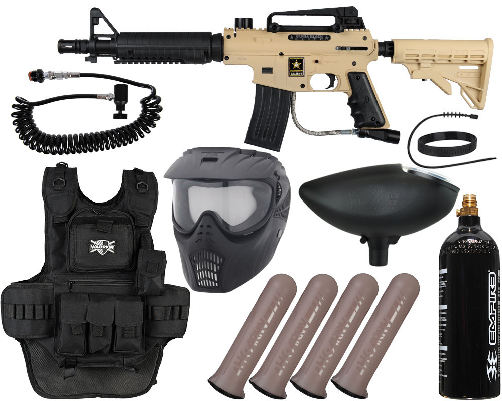 Patterned after the formidable M4 Small Arms Rifle, the new US Army Alpha Black paintball gun offers authentic looking realism right out of the box. Manufactured by Tippmann Sports, Alpha Black boasts an in-line bolt system, all-aluminum die cast receiver, stainless steel gas line and quick release feeder elbow.